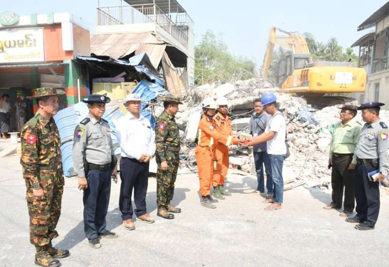 မြန်မာနိုင်ငံတွင် လှုပ်ခတ်ခဲ့သော မန္တလေးငလျင်ကြီးကြောင့် လမ်းတံတား၊ အဆောက်အအုံများ ထိခိုက်ပျက်စီးခဲ့ရသည့် နေရာများ၌ ကူညီကယ်ဆယ်ရေးနှင့် ပြန်လည်ထူထောင်ရေးလုပ်ငန်းများကို တိုင်းစစ်ဌာနချုပ်အသီးသီးမှ တပ်မတော်သားများ၊ မြန်မာနိုင်ငံရဲတပ်ဖွဲ့ဝင်များ၊ မီးသတ် တပ်ဖွဲ့ဝင်များ၊ ပြည်ပနိုင်ငံများမှ ကူညီကယ်ဆယ်ရေးအဖွဲ့များ၊ ဌာနဆိုင်ရာဝန်ထမ်းများ၊ လူမှုကူညီရေးအသင်း/အဖွဲ့များနှင့် ဒေသခံပြည်သူများပူးပေါင်း၍ အချိန်နှင့်တပြေးညီ ကူညီဆောင်ရွက်ပေးလျက်ရှိသည်။