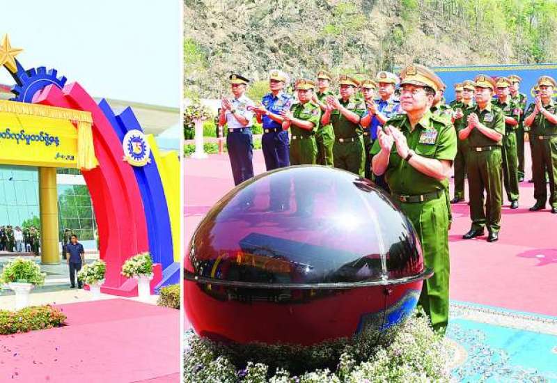 (၇၅)နှစ်မြောက် စိန်ရတုကာကွယ်ရေးပစ္စည်းထုတ်လုပ်မှုတပ်ဖွဲ့နေ့ အခမ်းအနားကို ယနေ့နံနက်ပိုင်းတွင် နေပြည်တော်ကောင်စီနယ်မြေအတွင်းရှိ နယ်မြေခံတပ်ဌာနချုပ်ခန်းမ၌ ကျင်းပပြုလုပ်ရာ နိုင်ငံတော်စီမံအုပ်ချုပ်ရေးကောင်စီဥက္ကဋ္ဌ တပ်မတော်ကာကွယ်ရေးဦးစီးချုပ် ဗိုလ်ချုပ်မှူးကြီး မင်းအောင်လှိုင် တက်ရောက်ချီးမြှင့်သည်။