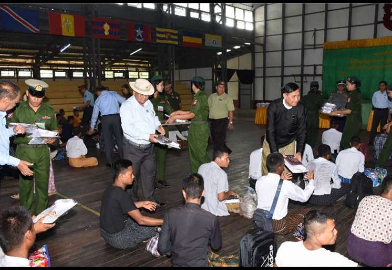 ပြည်သူ့စစ်မှုထမ်းသင်တန်း အမှတ်စဉ်(၁၂)သို့ တက်ရောက်မည့် ဧရာဝတီတိုင်းဒေသကြီးအတွင်းမှ နိုင်ငံ့သားကောင်းရတနာများအား ယနေ့နံနက်ပိုင်းတွင် ဧရာဝတီတိုင်းဒေသကြီး ဝန်ကြီးချုပ် ဦးတင်မောင်ဝင်း၊ အနောက်တောင်တိုင်းစစ်ဌာနချုပ် တိုင်းမှူးဗိုလ်မှူးချုပ် စိုးကျော်ထက်နှင့် တာဝန်ရှိသူများက ပုသိမ်တပ်နယ် အားကစားခန်းမ၌ သွားရောက်တွေ့ဆုံသည်။