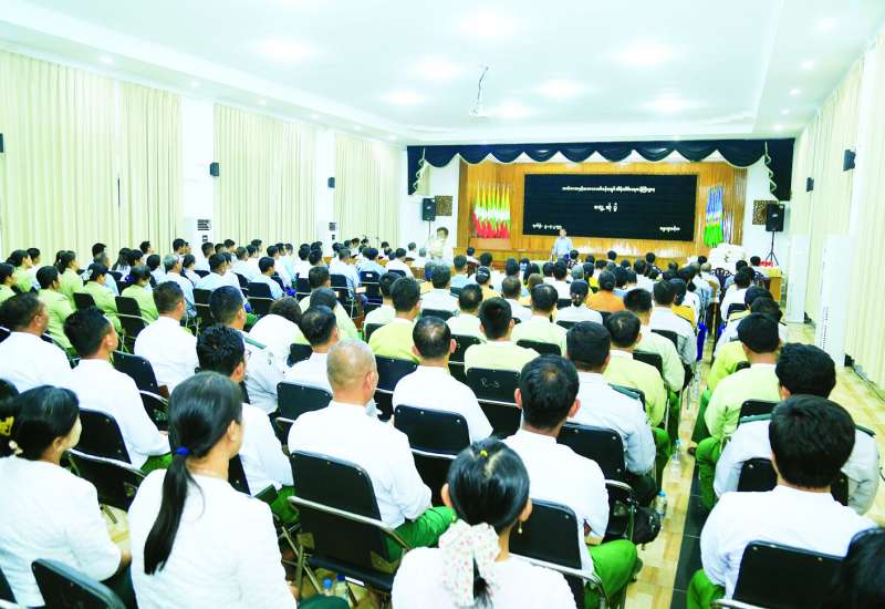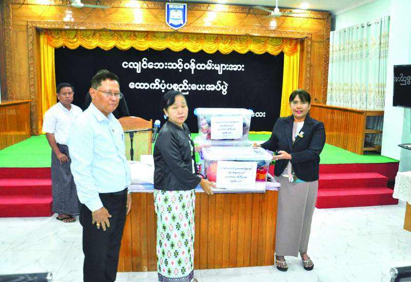 ဥပဒေရေးရာဝန်ကြီးဌာန ပြည်ထောင်စုဝန်ကြီးနှင့် ပြည်ထောင်စုရှေ့နေချုပ် ဒေါက်တာသီတာဦးသည် ညွှန်ကြားရေးမှူးချုပ်များ၊ တာဝန်ရှိသူများနှင့်အတူ မန္တလေးတိုင်းနှင့် စစ်ကိုင်းတိုင်းဒေသကြီးအတွင်းရှိ မန္တလေးငလျင်ဒဏ်သင့် ဥပဒေရုံးအဆင့်ဆင့်မှ ဝန်ထမ်းများနှင့် မှီခိုသူမိသားစုများအား ထောက်ပံ့ပစ္စည်းပေးအပ်ခြင်းနှင့် အားပေးစကားပြောကြားခြင်းတို့ကို ယနေ့တွင် မန္တလေးတိုင်းဒေသကြီးဥပဒေချုပ်ရုံး၌ ပြုလုပ်သည်။