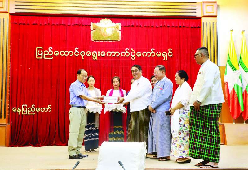 မတ် ၂၈ ရက်တွင် ဖြစ်ပွားခဲ့သော အင်အားအလွန်ပြင်းထန်သည့် မြေငလျင်ဘေးဒဏ်သင့် ပြည်ထောင်စုရွေးကောက်ပွဲကော်မရှင်ရုံးဝန်ထမ်းများနှင့် ဝန်ထမ်းမိသားစုများအတွက် နိုင်ငံရေးပါတီ ၂၅ ပါတီက စုပေါင်း၍ အလှူငွေကျပ် သိန်း ၁၀၀ လှူဒါန်းခြင်းအခမ်းအနားကို ယနေ့ မွန်းလွဲ ၁ နာရီက ပြည်ထောင်စုရွေးကောက်ပွဲကော်မရှင်ရုံး အစည်းအဝေးခန်းမ၌ ကျင်းပသည်။ အဆိုပါအခမ်းအနားသို့ ပြည်ထောင်စုရွေးကောက်ပွဲကော်မရှင်ဥက္ကဋ္ဌ ဦးကိုကို၊ ဒုတိယဥက္ကဋ္ဌ ဦးသန်းစိုးနှင့် ကော်မရှင်အဖွဲ့ဝင်များ၊ ပြည်ထောင်စုရွေးကောက်ပွဲကော်မရှင်ရုံးမှ တာဝန်ရှိသူများ၊ လှူဒါန်းသည့် နိုင်ငံရေးပါတီ ၂၅ ပါတီမှ ခေါင်းဆောင်များနှင့် ကိုယ်စားလှယ်များ တက်ရောက်ကြသည်။