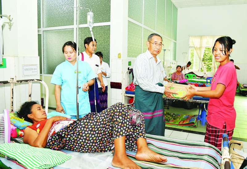နိုင်ငံတော်စီမံအုပ်ချုပ်ရေးကောင်စီအဖွဲ့ဝင် မန်းငြိမ်းမောင်သည် ယနေ့ နံနက်ပိုင်းတွင် နေပြည်တော် ပြည်သူ့ဆေးရုံကြီး ခုတင် (၁၀၀၀) သို့ သွားရောက်၍ ကျန်းမာရေးဝန်ထမ်းများနှင့် ငလျင်ဘေးဒဏ်သင့်လူနာများအား တွေ့ဆုံအားပေးစကားပြောကြားကာ စားသောက်ဖွယ်ရာများနှင့် ထောက်ပံ့ငွေများ ပေးအပ်လှူဒါန်းသည်။