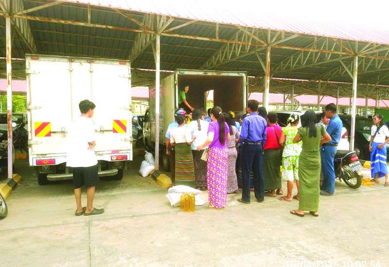 စီးပွားရေးနှင့်ကူးသန်းရောင်းဝယ်ရေးဝန်ကြီးဌာနနှင့် မြန်မာနိုင်ငံကုန်သည်များနှင့် စက်မှုလက်မှုလုပ်ငန်းရှင်များအသင်းချုပ် (UMFCCI) တို့၏ စီစဉ်မှုဖြင့် ဆန်၊ ဆီ၊ ပဲ၊ ဆား၊ ငါးပိနှင့်ကုန်မျိုးစုံဈေးကားများသည် ပြည်ထောင်စုနယ်မြေ နေပြည်တော်အတွင်း ငလျင်ဒဏ်သင့်ဝန်ထမ်းအိမ်ရာများသို့ မတ် ၃၀ ရက်မှစ၍ အိမ်တိုင်ရာရောက် သွားရောက်ကာ သက်သာသောဈေးနှုန်းများဖြင့် ရောင်းချပေးလျက်ရှိပြီး ယနေ့တွင် ၁၂ ရက်မြောက်နေ့အဖြစ် ဈေးကားခုနစ်စီးဖြင့် လှည့်လည်ရောင်းချပေးကြောင်း သိရသည်။