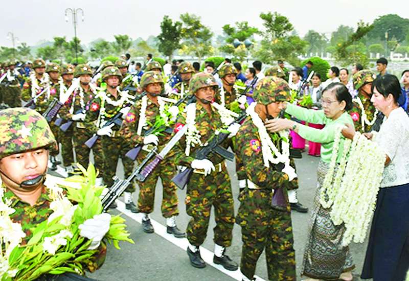 နှစ်(၈၀)ပြည့် တပ်မတော်နေ့စစ်ရေးပြအခမ်းအနားကို ယနေ့နံနက်ပိုင်းက မန္တလေးတိုင်းဒေသကြီး နန်းမြို့အတွင်းရှိ အလယ်ပိုင်းတိုင်းစစ်ဌာနချုပ် စစ်ရေးပြကွင်း၌ကျင်းပရာ မန္တလေးတိုင်းဒေသကြီးဝန်ကြီးချုပ် ဦးမျိုးအောင်၊ အလယ်ပိုင်းတိုင်းစစ်ဌာနချုပ် တိုင်းမှူး ဗိုလ်မှူးချုပ် ကျော်ကိုထိုက်၊ တိုင်းဒေသကြီးဝန်ကြီးများ၊ အလယ်ပိုင်းတိုင်းစစ်ဌာနချုပ်မှ တပ်မတော်အရာရှိကြီးများ၊ အရာရှိ၊ အရာခံ၊ အကြပ်၊ စစ်သည်၊ မိသားစုများ၊ ဆရာတော်၊ သံဃာတော်များ၊ ဌာနဆိုင်ရာဝန်ထမ်းများနှင့် ဆရာ ဆရာမများ၊ ကျောင်းသား ကျောင်းသူများ၊ ဒေသခံ ပြည်သူများ စုစုပေါင်းအင်အား ၇၀၀၀ ကျော်ခန့် တက်ရောက်သည်။