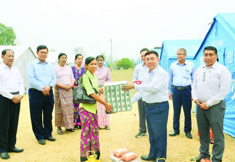 နိုင်ငံတော်စီမံအုပ်ချုပ်ရေးကောင်စီဥက္ကဋ္ဌ နိုင်ငံတော်ဝန်ကြီးချုပ် ဗိုလ်ချုပ်မှူးကြီး မင်းအောင်လှိုင်သည် မတ် ၂၈ ရက်တွင် လှုပ်ခတ်ခဲ့သော မန္တလေးငလျင်ကြီးကြောင့် အနည်းငယ်ထိခိုက်ပျက်စီးခဲ့သည့် မြန်မာအပြည်ပြည်ဆိုင်ရာ ကွန်ဗင်းရှင်းဗဟိုဌာန-၁ (MICC-1)၊ ရန်အောင်မြင်ဆည်တို့အား သွားရောက်ကြည့်ရှုစစ်ဆေးပြီး ဇမ္ဗူသီရိမြို့နယ် ရွှေကြာပင်ရပ်ကွက်ရှိ မြို့နယ်အားကစားကွင်း၌ ယာယီဖွင့်လှစ်ကုသပေးလျက်ရှိသည့် ယာယီဆေးရုံရှိလူနာများအား ယနေ့မွန်းလွဲပိုင်းတွင် သွားရောက်ကြည့်ရှုအားပေးစကားပြောကြားသည်။