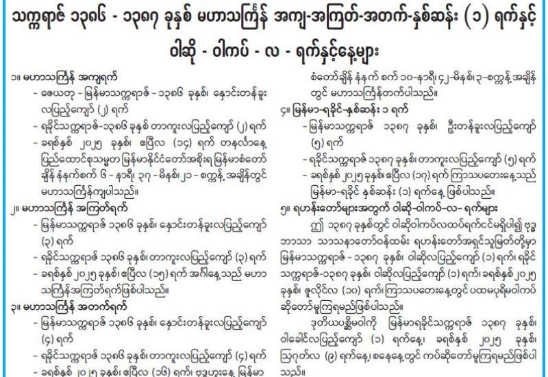သာသနာတော်နှစ် ၂၅၆၈ -၂၅၆၉ ခုနှစ် သက္ကရာဇ် ၁၃၈၆ - ၁၃၈၇ ခုနှစ် မဟာသင်္ကြန် အကျ-အကြတ်-အတက်-နှစ်ဆန်း (၁) ရက်နှင့် ဝါဆို - ဝါကပ် - လ - ရက်နှင့်နေ့များ