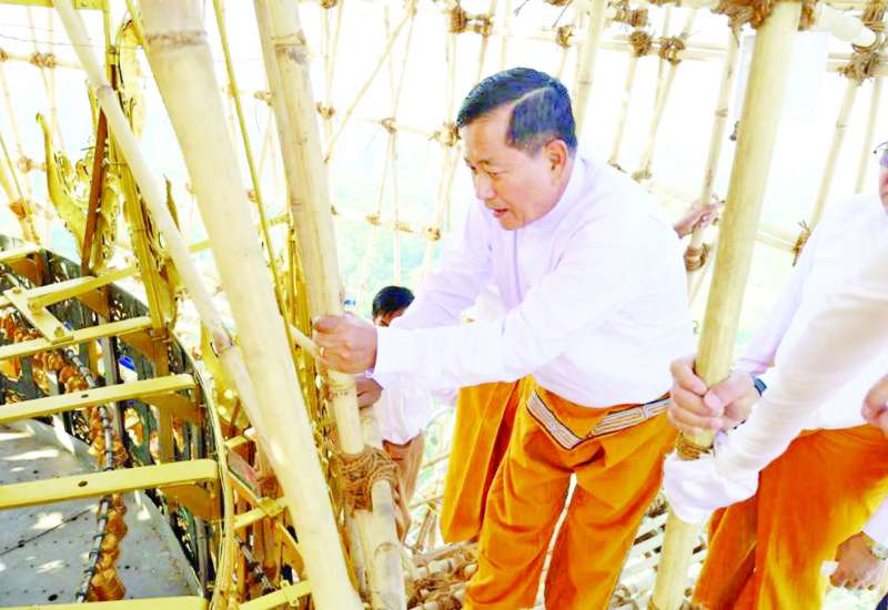 သာသနာရေးနှင့်ယဉ်ကျေးမှုဝန်ကြီးဌာန ဒုတိယဝန်ကြီး ဦးအေးထွန်းသည် တာဝန်ရှိသူများနှင့်အတူ မတ် ၁၅ ရက်နံနက်ပိုင်းတွင် ရွှေတိဂုံစေတီတော်မြတ်ကြီး လုံးတော်ပြည့်ရွှေသင်္ကန်း ကပ်လှူပြီးစီးမှု၊ စိန်ဖူးတော်၊ ငှက်မြတ်နားတော်၊ ထီးတော်နှင့် ဆပ်သွားဖူးတော်ရှိ ရတနာပစ္စည်းများ ရောင်တော်ဖွင့်ခြင်းလုပ်ငန်းပြီးစီးမှုတို့ကို ကြည့်ရှုစစ်ဆေးခဲ့ပြီး ငြမ်းစေတီမီးဘေးအန္တရာယ်ကင်းရှင်းရေး၊ မီးဘေးကာကွယ်ရေးနှင့် လုံခြုံရေးကိစ္စရပ်များကို အထူးအလေးထား ကြပ်မတ်ဆောင်ရွက်ရန် မှာကြားခဲ့သည်။