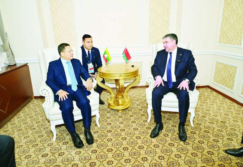 ဘယ်လာရုစ်သမ္မတနိုင်ငံ မင့်စ်မြို့၌ နိုင်ငံတော်အဆင့် ချစ်ကြည်ရေးခရီးရောက်ရှိနေသည့် နိုင်ငံတော်စီမံအုပ်ချုပ်ရေးကောင်စီဥက္ကဋ္ဌ နိုင်ငံတော်ဝန်ကြီးချုပ် ဗိုလ်ချုပ်မှူးကြီး မင်းအောင်လှိုင်သည် ဘယ်လာရုစ်သမ္မတနိုင်ငံဝန်ကြီးချုပ် H.E. Mr. Roman Alexand-rovich Golovchenko နှင့် ယနေ့ဒေသစံတော်ချိန် ညနေပိုင်းတွင် ဝန်ကြီးချုပ်ရုံးအစည်းအဝေးခန်းမ၌ တွေ့ဆုံဆွေးနွေးသည်။