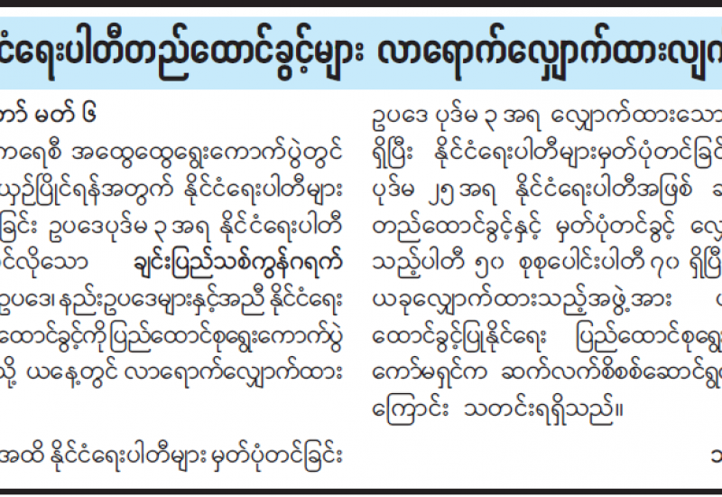 ဖက်စပ်လုပ်ငန်းများ၊ အစိုးရနှင့်ပုဂ္ဂလိက နည်းလမ်းအမျိုးမျိုးဖြင့် ပူးပေါင်းဆောင်ရွက်သည့်လုပ်ငန်းများ စာရင်းစစ်ဆေးခြင်းနှင့်စပ်လျဉ်းသည့် ညှိနှိုင်းဆွေးနွေးပွဲကို ယနေ့မွန်းလွဲ ၁ နာရီတွင် နေပြည်တော်ရှိ ပြည်ထောင်စုစာရင်းစစ်ချုပ်ရုံး နဝရတ်ခန်းမ၌ ကျင်းပသည်။