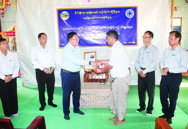 ရာဂီမုန်တိုင်းအရှိန်ဖြင့် ဖြစ်ပေါ်ခဲ့သည့် ရေကြီးရေလျှံမှုများကြောင့် ပျက်စီးဆုံးရှုံးခဲ့ရသည့် မွေးမြူရေးလုပ်ငန်းများ အရှိန်အဟုန်မပျက် ပြန်လည်လုပ်ကိုင်နိုင်ကြစေရန် မွေးမြူရေးတိရစ္ဆာန်များ ပေးအပ်ခြင်းအခမ်းအနားကို ယနေ့နံနက်ပိုင်းက နေပြည်တော် တပ်ကုန်းမြို့နယ် ဘုရင့်နောင်ရပ်ကွက်၌ ကျင်းပသည်။