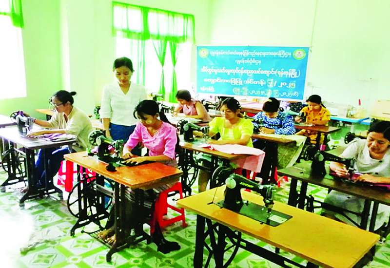 လူမှုဝန်ထမ်း၊ ကယ်ဆယ်ရေးနှင့် ပြန်လည်နေရာချထားရေးဝန်ကြီးဌာန လူမှုဝန်ထမ်းဦးစီးဌာနသည် ရန်ကုန်၊ မန္တလေး၊ မော်လမြိုင်၊ ပုသိမ်၊ တောင်ငူ၊ မြစ်ကြီးနား၊ ဖျာပုံ၊ စစ်တွေ၊ ရွာငံနှင့်ထားဝယ်မြို့တို့၌ အိမ်တွင်းမှုသက်မွေးလုပ်ငန်းပညာသင်ကျောင်းများ ဖွင့်လှစ်ထားရှိပြီး စက်ချုပ်သင်တန်းများ၊ လက်မှုသင်တန်း၊ မုန့်မျိုးစုံပြုလုပ်နည်း သင်တန်း၊ အစားအစာချက်ပြုတ်နည်းသင်တန်းနှင့် ပန်းအလှပြင်သင်တန်းများကို အပတ်စဉ်တစ်ခုလျှင် ရက်သတ္တခြောက်ပတ်ဖြင့် သင်ကြားပေးလျက်ရှိသည်။