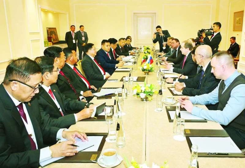 ရုရှားဖက်ဒရေးရှင်းနိုင်ငံသို့ တရားဝင်ချစ်ကြည်ရေးခရီးရောက်ရှိနေသည့် နိုင်ငံတော်စီမံအုပ်ချုပ်ရေးကောင်စီဥက္ကဋ္ဌ နိုင်ငံတော်ဝန်ကြီးချုပ် ဗိုလ်ချုပ်မှူးကြီးမင်းအောင်လှိုင်သည် မတ် ၄ ရက်နေ့ညပိုင်းတွင် ရုရှား-အာဆီယံစီးပွားရေးကော်မရှင်ဥက္ကဋ္ဌ Mr. Ivan Polyakov ဦးဆောင်သည့်အဖွဲ့အား မော်စကိုမြို့၊ Radisson Collection ဟိုတယ်ရှိ အစည်းအဝေးခန်းမ၌ လက်ခံတွေ့ဆုံသည်။