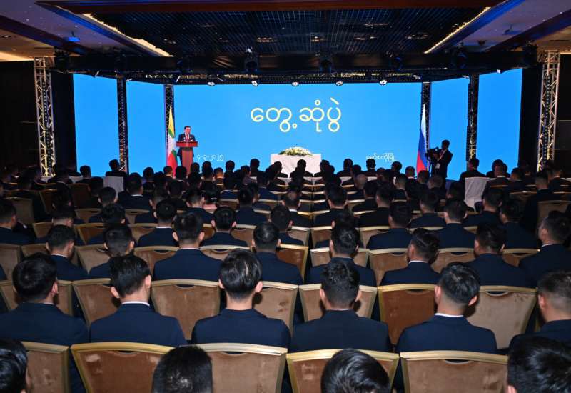 ရုရှားဖက်ဒရေးရှင်းနိုင်ငံသို့ တရားဝင်ချစ်ကြည်ရေးခရီးရောက်ရှိနေသည့် နိုင်ငံတော်စီမံအုပ်ချုပ်ရေးကောင်စီဥက္ကဋ္ဌ နိုင်ငံတော်ဝန်ကြီးချုပ် ဗိုလ်ချုပ်မှူးကြီးမင်းအောင်လှိုင်သည် မတ် ၄ ရက်၊ ညပိုင်းတွင် ရုရှားဖက်ဒရေးရှင်းနိုင်ငံတွင် ပညာတော်သင်ရောက်ရှိနေသည့် စစ်ဘက်၊ အရပ်ဘက်မှ သင်တန်းသားအရာရှိများအား မော်စကိုမြို့ရှိ Radisson Collection ဟိုတယ် Conference Hall ၌ တွေ့ဆုံအမှာစကား ပြောကြားသည်။