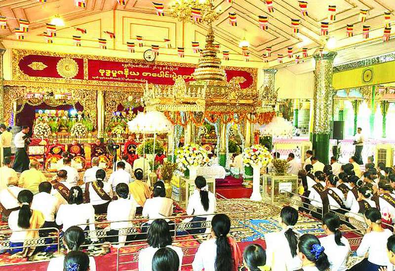 ရွှေတိဂုံစေတီတော် (၂၆၁၃) နှစ် မြောက် ဗုဒ္ဓပူဇနိယ တပေါင်းပွဲတော်ဖွင့်ပွဲနှင့် နှစ်ကျိပ်ရှစ်ဆူ ဘုရားလှည့်လည်ပူဇော်ပွဲ အခမ်းအနားကို ယနေ့နံနက်ပိုင်းတွင် ရွှေတိဂုံစေတီရင်ပြင်တော် ရာဟုထောင့် ချမ်းသာကြီးတန်ဆောင်း၌ ကျင်းပသည်။
