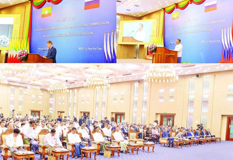 မြန်မာ-ရုရှား နှစ်နိုင်ငံအကြား ကုန်သွယ်ရေးနှင့် စီးပွားရေးပူးပေါင်းဆောင်ရွက်မှုများ ပိုမိုတိုးမြှင့်လာစေရန် ရည်ရွယ်၍ ပဉ္စမအကြိမ် ရုရှား - မြန်မာ အစိုးရအချင်းချင်းကုန်သွယ်ရေးနှင့် စီးပွားရေးပူးပေါင်းဆောင်ရွက်ရေးကော်မရှင်အစည်းအဝေးကို ကော်မရှင်၏ ပူးတွဲဥက္ကဋ္ဌများဖြစ်ကြသော ရင်းနှီးမြှုပ်နှံမှုနှင့် နိုင်ငံခြားစီးပွားဆက်သွယ်ရေးဝန်ကြီးဌာန ပြည်ထောင်စုဝန်ကြီး ဒေါက်တာ ကံဇော်နှင့် ရုရှားဖက်ဒရေးရှင်းနိုင်ငံ စီးပွားရေးဖွံ့ဖြိုးတိုးတက်မှုဝန်ကြီး မစ္စတာ မက်ဆင်းရယ်ရှဲသငြိကော့ဗ်တို့ ဦးဆောင်၍ ယနေ့နံနက်ပိုင်းတွင် နေပြည်တော်ရှိ မြန်မာအပြည်ပြည်ဆိုင်ရာ ကွန်ဗင်းရှင်းဗဟိုဌာန(၂)၌ ကျင်းပပြုလုပ်သည်။