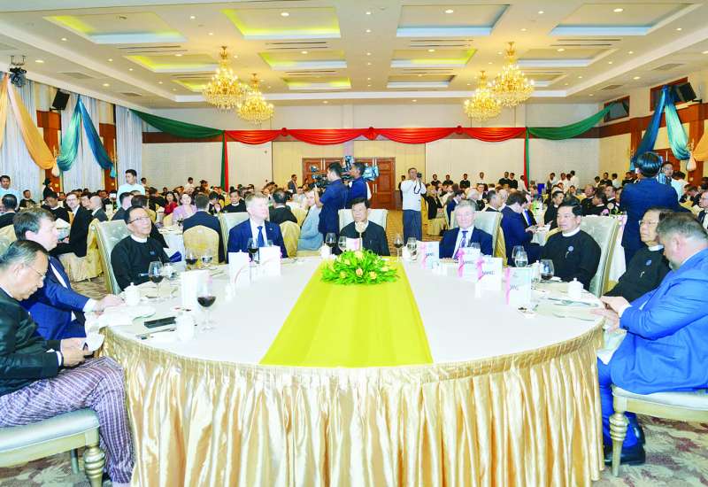 မြန်မာနိုင်ငံက အိမ်ရှင်အဖြစ်လက်ခံကျင်းပမည့် ပဉ္စမအကြိမ် ရုရှား-မြန်မာ အစိုးရအချင်းချင်း ကုန်သွယ်ရေးနှင့်စီးပွားရေးပူးပေါင်းဆောင်ရွက်ရေးကော်မရှင်အစည်းအဝေးသို့ တက်ရောက်ရန် နေပြည်တော်၌ ရောက်ရှိနေသည့် ရုရှားဖက်ဒရေးရှင်းနိုင်ငံ စီးပွားရေးဖွံ့ဖြိုးတိုးတက်မှုဝန်ကြီးဌာန ဝန်ကြီး H.E. Mr. Maxim RESHETNIKOV ဦးဆောင်သည့် ကိုယ်စားလှယ်အဖွဲ့အား ရင်းနှီးမြှုပ်နှံမှုနှင့် နိုင်ငံခြားစီးပွားဆက်သွယ်ရေးဝန်ကြီးဌာန ပြည်ထောင်စုဝန်ကြီး ဒေါက်တာကံဇော်က ယနေ့ညနေပိုင်းတွင် နေပြည်တော်ရှိ Horizon Lake View Resort ၌ ဂုဏ်ပြုညစာစားပွဲဖြင့် ကြိုဆိုတည်ခင်းဧည့်ခံသည်။