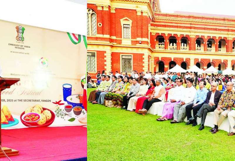 မြန်မာ-အိန္ဒိယ နှစ်နိုင်ငံအကြား ယဉ်ကျေးမှုဆိုင်ရာ ထိတွေ့ဆောင်ရွက်မှုနှင့် အတွေ့အကြုံဖလှယ်မှုများမှတစ်ဆင့် နှစ်နိုင်ငံချစ်ကြည်ရင်းနှီးမှုကို မြှင့်တင်သွားနိုင်ရန်ရည်ရွယ်၍ ရန်ကုန်မြို့မှ အိန္ဒိယသံရုံးသည် ရန်ကုန်မြို့ရှိ အိန္ဒိယနွယ်ဖွား အမျိုးသမီးများအသင်းနှင့် မြန်မာစီးပွားရေးလုပ်ငန်းရှင်အမျိုးသမီးများကွန်ရက်တို့နှင့် ပူးပေါင်း၍ “Mekong-Ganga Food Festival” ပွဲတော်ကို ယနေ့မွန်းလွဲပိုင်းတွင် ရန်ကုန်မြို့ သိမ်ဖြူလမ်းရှိ ယခင်ဝန်ကြီးများရုံး၌ ကျင်းပရာ ဟိုတယ်နှင့်ခရီးသွားလာရေးဝန်ကြီးဌာန ပြည်ထောင်စုဝန်ကြီး ဦးကျော်စိုးဝင်း တက်ရောက်အမှာစကားပြောကြားသည်။
