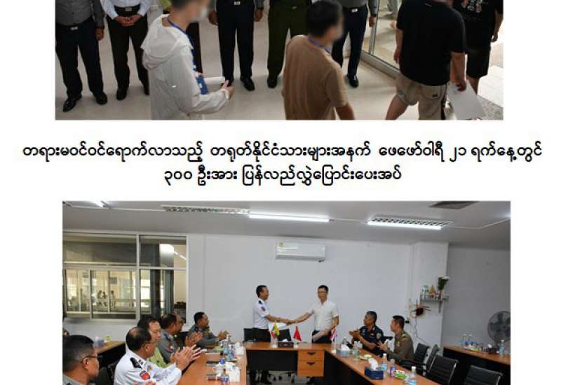 ထိုင်းနိုင်ငံအပါအဝင် အိမ်နီးချင်းနိုင်ငံအချို့ကို တစ်ဆင့်ခံဖြတ်သန်း၍ မြန်မာနိုင်ငံအတွင်းသို့ နယ်စပ်လမ်းကြောင်းများမှတစ်ဆင့် တရားမဝင် ဝင်ရောက်လာပြီး ကရင်ပြည်နယ် မြဝတီမြို့- ရွှေကုက္ကိုလ်နှင့် KK Park နယ်မြေများတွင် တရားမဝင် Online လောင်းကစားမှုများ၊ Online လိမ်လည်မှုများ၊ ဒုစရိုက်မှုများ ကျူးခဲ့ကြသူများကို စစ်ဆေးဖော်ထုတ်လျက်ရှိရာ ယနေ့တွင် ပြည်ပနိုင်ငံသား ၂၂၂ ဦးကို ထပ်မံထိန်းသိမ်းနိုင်ခဲ့သည်။