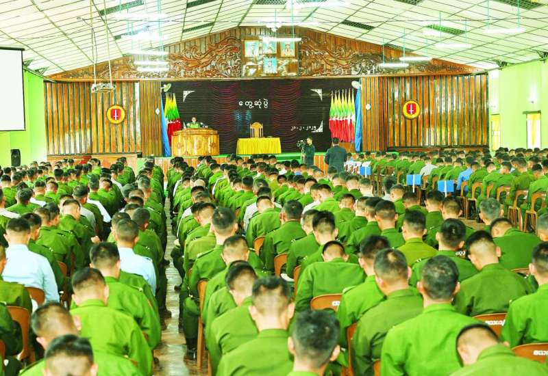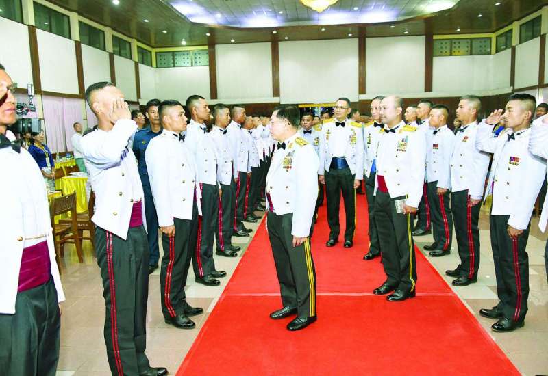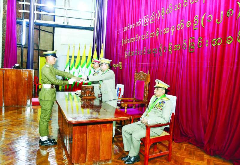 တပ်မတော် (ကြည်း) ဗိုလ်သင်တန်းကျောင်း (ဗထူး)၊ ဗိုလ်လောင်းသင်တန်း အမှတ်စဉ် (၁၂၈) သူရတပ်ခွဲ ပြန်တမ်းဝင်အရာရှိခန့်အပ်ခြင်းအခမ်းအနားကို ယနေ့နံနက်ပိုင်းတွင် တပ်မတော် (ကြည်း) ဗိုလ်သင်တန်းကျောင်း (ဗထူး) စစ်ရာထူးခန့်ထားရေးခန်းမဆောင်၌ ကျင်းပရာ ကာကွယ်ရေးဦးစီးချုပ်ရုံး (ကြည်း) မှ စစ်ရာထူးခန့်ချုပ် ဒုတိယဗိုလ်ချုပ်ကြီး လင်းအောင်၊ ဒုတိယတပ်မတော်လေ့ကျင့်ရေးအရာရှိချုပ် ဗိုလ်ချုပ် အောင်မျိုးသန့်၊ ကျောင်းအုပ်ကြီး ဗိုလ်မှူးချုပ် နိုင်ဝင်းအောင် ကျောင်းဆင်းဗိုလ်လောင်းများ၊ ၎င်းတို့၏ မိဘဆွေမျိုးများနှင့် နည်းပြများ တက်ရောက်ကြသည်။