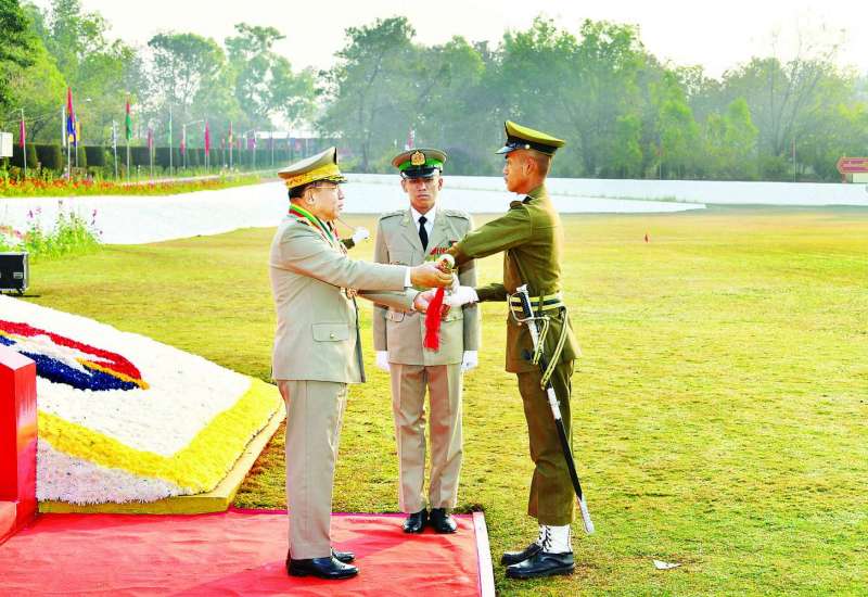 တပ်မတော်(ကြည်း) ဗိုလ်သင်တန်းကျောင်း(ဗထူး) ဗိုလ်လောင်းသင်တန်း အမှတ်စဉ် (၁၂၈)သူရတပ်ခွဲ သင်တန်းဆင်းဂုဏ်ပြုစစ်ရေးပြအခမ်းအနားကို ယနေ့နံနက်ပိုင်းတွင် ဗထူးမြို့၊ တပ်မတော်(ကြည်း)ဗိုလ်သင်တန်းကျောင်း (ဗထူး)စစ်ရေးပြကွင်း၌ ကျင်းပရာ နိုင်ငံတော်စီမံအုပ်ချုပ်ရေးကောင်စီဥက္ကဋ္ဌ တပ်မတော်ကာကွယ်ရေးဦးစီးချုပ် ဗိုလ်ချုပ်မှူးကြီး သတိုးမဟာသရေစည်သူ သတိုးသီရိသုဓမ္မ မင်းအောင်လှိုင် တက်ရောက်မိန့်ခွန်းပြောကြားသည်။
