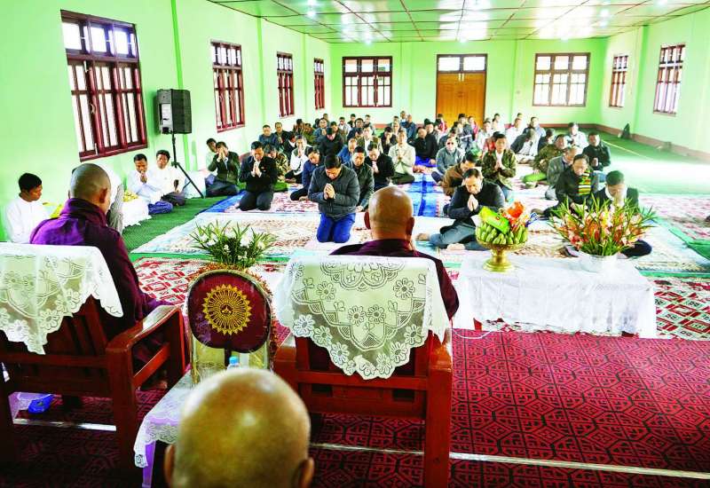 ချင်းပြည်နယ် ဟားခါးမြို့၌ ရောက်ရှိနေသည့် နိုင်ငံတော်စီမံအုပ်ချုပ်ရေးကောင်စီအဖွဲ့ဝင် ဒုတိယဝန်ကြီးချုပ်နှင့် နိုင်ငံတော်ဝန်ကြီးချုပ်ရုံး ပြည်ထောင်စုဝန်ကြီး ဗိုလ်ချုပ်ကြီး တင်အောင်စန်းသည် နိုင်ငံတော်စီမံအုပ်ချုပ်ရေးကောင်စီအဖွဲ့ဝင် နယ်စပ်ရေးရာဝန်ကြီးဌာန ပြည်ထောင်စုဝန်ကြီး ဒုတိယဗိုလ်ချုပ်ကြီးရာပြည့်၊ နိုင်ငံတော်စီမံအုပ်ချုပ်ရေးကောင်စီအဖွဲ့ဝင် ဒေါက်တာမှုထန်နှင့် ဒေါက်တာဘရွှေ၊ ပြည်ထောင်စုဝန်ကြီးများ၊ ဒုတိယဝန်ကြီးများ၊ ချင်းပြည်နယ်ဝန်ကြီးချုပ်၊ ပြည်နယ်ဥပဒေချုပ်၊ အနောက်မြောက်တိုင်းစစ်ဌာနချုပ် ဒုတိယတိုင်းမှူး၊ ပြည်နယ်အစိုးရအဖွဲ့ဝင်ဝန်ကြီးများ၊ ဌာနဆိုင်ရာတာဝန်ရှိသူများနှင့်အတူ ယနေ့နံနက်ပိုင်းတွင် သာသနာ့ရက္ခိတကျောင်း၌ နယ်စပ်ဒေသ ဖွံ့ဖြိုးရေးရန်ပုံငွေဖြင့် ဆောက်လုပ်သည့် ဓမ္မာရုံအသစ်ဆောက်လုပ် လှူဒါန်းခြင်းအခမ်းအနားသို့ တက်ရောက်ကြသည်။