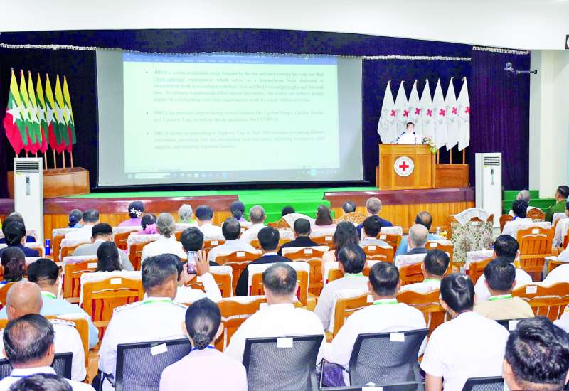 မြန်မာနိုင်ငံ ကြက်ခြေနီအသင်း (၈၇) ကြိမ်မြောက် ကြက်ခြေနီဗဟိုကောင်စီအစည်းအဝေး ဖွင့်ပွဲအခမ်းအနားကို ယနေ့နံနက်ပိုင်းတွင် နေပြည်တော်ရှိ မြန်မာနိုင်ငံ ကြက်ခြေနီအသင်းဌာနချုပ်၌ ကျင်းပရာ ကျန်းမာရေးဝန်ကြီးဌာန ဒုတိယဝန်ကြီး ပါမောက္ခ ဒေါက်တာအေးထွန်း တက်ရောက်အမှာစကားပြောကြားသည်။