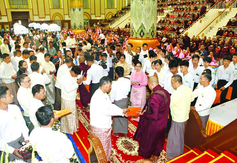 ပြန်ကြားရေးဝန်ကြီးဌာန မြန်မာ့အသံနှင့်ရုပ်မြင်သံကြား၏ (၇၉)နှစ်မြောက် နှစ်ပတ်လည်နေ့ အထိမ်းအမှတ်ထူးချွန်ဆုရရှိသော ဝန်ထမ်းများအား ဆုချီးမြှင့်ခြင်းနှင့် ဝန်ထမ်းများအတွက် ဗလာမပါ ကံစမ်းမဲချီးမြှင့်ခြင်း အခမ်းအနားကို ယနေ့မွန်းလွဲပိုင်းတွင် နေပြည်တော်(တပ်ကုန်းမြို့)ရှိ မြန်မာ့အသံနှင့် ရုပ်မြင်သံကြား Auditorium ၌ ကျင်းပသည်။