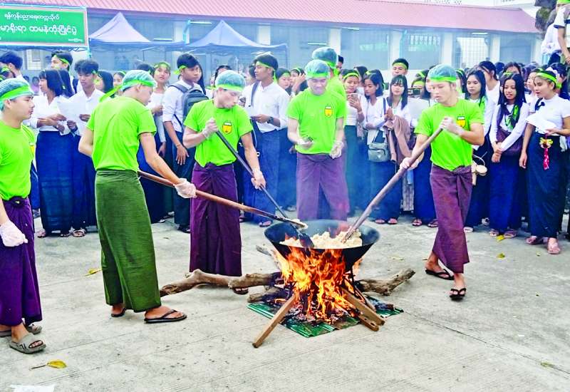 ပညာရေးဝန်ကြီးဌာန အဆင့်မြင့်ပညာ ဦးစီးဌာနအောက်ရှိ ရန်ကုန်ပညာရေးတက္ကသိုလ် ၂၀၂၄-၂၀၂၅ ပညာသင်နှစ် မြန်မာ့ရိုးရာထမနဲထိုးပြိုင်ပွဲကို ယနေ့နံနက်ပိုင်းတွင် ရန်ကုန်ပညာရေးတက္ကသိုလ်၌ကျင်းပရာ ရန်ကုန်ပညာရေးတက္ကသိုလ်မှ ပါမောက္ခချုပ်နှင့် တာဝန်ရှိသူများ၊ ကျောင်းသားကျောင်းသူများ တက်ရောက်ကြသည်။