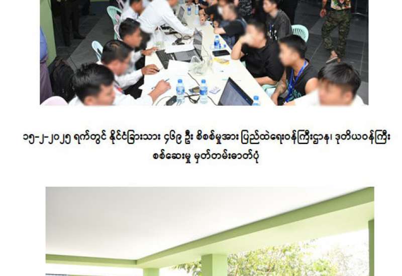 နိုင်ငံတော်အစိုးရအနေဖြင့် နယ်စပ်ဒေသများ၌ လက်ရှိဖြစ်ပေါ်နေသည့် အခြေအနေများအပေါ် အခွင့်ကောင်းယူ၍ ပြည်ပနိုင်ငံသား အချို့အနေဖြင့် EAO လက်နက်ကိုင်အဖွဲ့များအပါအဝင် ဆက်စပ်နေရာများမှ ကိုယ်ကျိုးစီးပွားရှာသူများ၏ ပါဝင်ပတ်သက်မှုများဖြင့် အွန်လိုင်းလိမ်လည်မှုများ၊ အွန်လိုင်းလောင်းကစားမှုများတွင် ပါဝင်ဆောင်ရွက်နေသူများ၊ တရားမဝင် ဝင်ရောက်နေထိုင်သူများအား ရှာဖွေစိစစ်ဖော်ထုတ်ခြင်းနှင့် ပြန်လည်လွှဲပြောင်းခြင်းလုပ်ငန်းစဉ်ကို အလေးထားဆောင်ရွက်လျက်ရှိသည်။