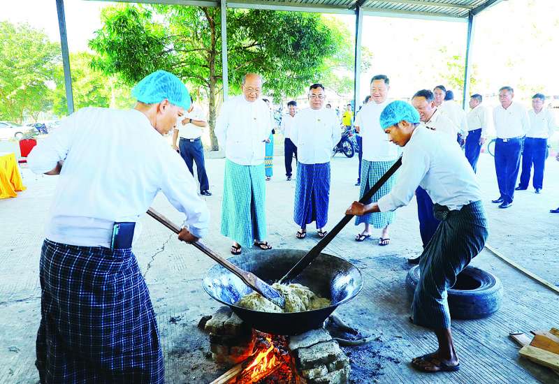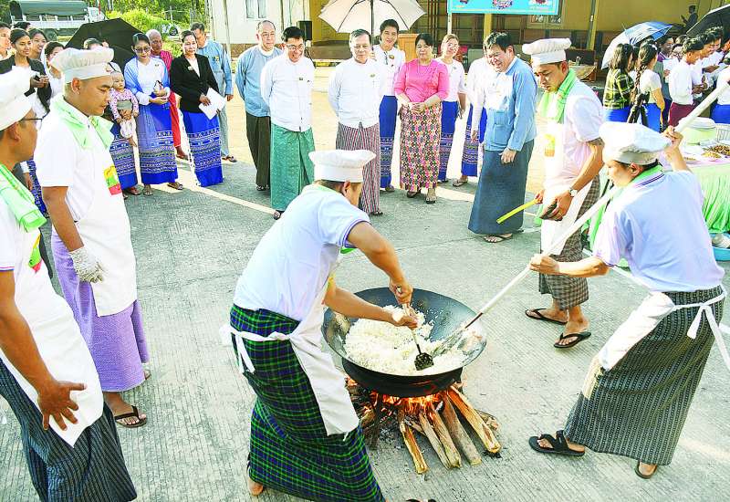 (၇၈)နှစ်မြောက် ပြည်ထောင်စုနေ့ကို ဂုဏ်ပြုသောအားဖြင့် သမဝါယမနှင့် ကျေးလက်ဖွံ့ဖြိုးရေးဝန်ကြီးဌာန ဝန်ထမ်းမိသားစုများ၏ စတုတ္ထအကြိမ် မြန်မာ့ရိုးရာထမနဲထိုးပြိုင်ပွဲကို ယနေ့နံနက်ပိုင်းတွင် အဆိုပါဝန်ကြီးဌာန၌ကျင်းပရာ ပြည်ထောင်စုဝန်ကြီး ဦးလှမိုး၊ ဒုတိယဝန်ကြီး ဦးမြင့်စိုးနှင့် တာဝန်ရှိသူများ၊ ပြိုင်ပွဲဝင်အသင်းများနှင့် အရာထမ်းအမှုထမ်းများ ပျော်ရွှင်စွာပါဝင်ဆင်နွှဲကြသည်။