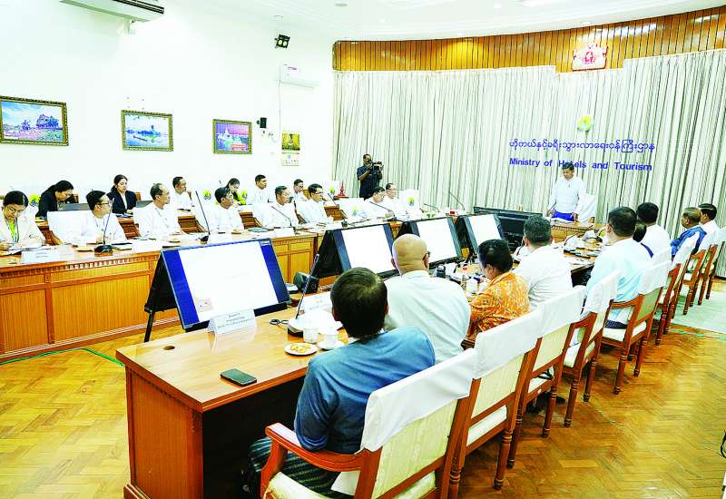 မြန်မာနိုင်ငံရှိ ခရီးစဉ်ဒေသများအား ကမ္ဘာကသိရှိပြီး ပြည်ပခရီးသွားဧည့်သည်များ ပိုမိုတိုးတက်ဝင်ရောက်လာစေရန် ရည်ရွယ်၍ မြန်မာနိုင်ငံခရီးသွားပြပွဲ ၂၀၂၅ (Myanmar Tourism Fair MTF- 2025) ကျင်းပနိုင်ရေးအတွက် ဟိုတယ်နှင့်ခရီးသွားလာရေးဝန်ကြီးဌာန ပြည်ထောင်စုဝန်ကြီး ဦးကျော်စိုးဝင်းသည် မြန်မာနိုင်ငံ ခရီးသွားလုပ်ငန်းအဖွဲ့ချုပ်ဥက္ကဋ္ဌနှင့် ဗဟိုအလုပ်အမှုဆောင်အဖွဲ့ ဝင်များအား ယနေ့မွန်းလွဲပိုင်းတွင် ဝန်ကြီးဌာနရှိ နီလာအစည်းအဝေးခန်းမ၌ တွေ့ဆုံဆွေးနွေးသည်။