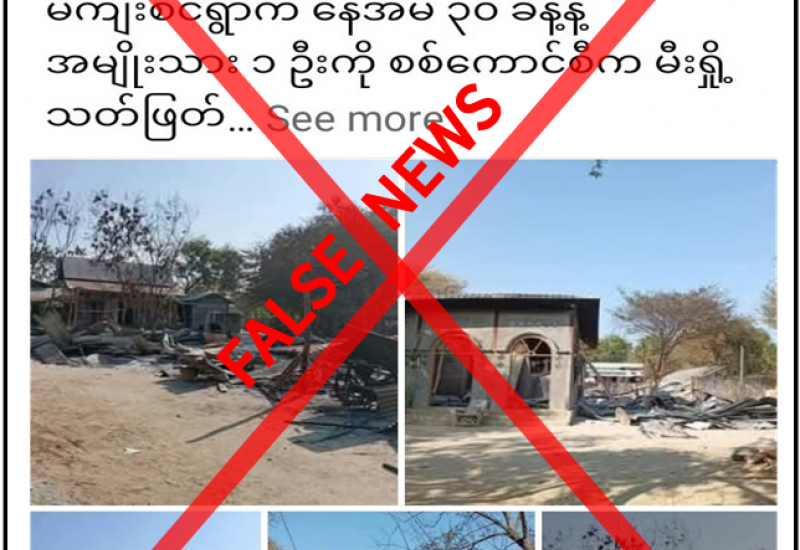 မကွေးတိုင်းဒေသကြီး၊ ပေါက်မြို့နယ်၊ မကျီးစင်ကျေးရွာကို လုံခြုံရေးတပ်ဖွဲ့ဝင်များက ဝင်ရောက်၍ နေအိမ် ၃၀ ခန့်အားမီးရှို့ခဲ့ပြီး အမျိုးသား ၁ ဦးအား သတ်ဖြတ်ခဲ့ကြောင်း တရားမဝင် ပြည်ဖျက်မီဒီယာများက သတင်းအမှားများ မဟုတ်မမှန်ရေးသား ဖြန့်ဝေလျက်ရှိကြောင်း တွေ့ရှိရသည်။