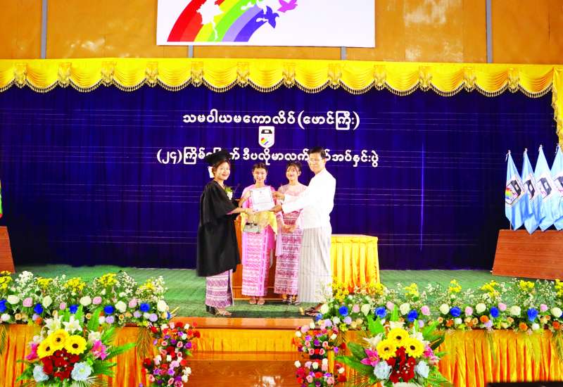 သမဝါယမနှင့် ကျေးလက်ဖွံ့ဖြိုးရေးဝန်ကြီးဌာန သမဝါယမကောလိပ် (ဖောင်ကြီး) ၏ ၂၀၁၈-၂၀၁၉ ပညာသင်နှစ်မှ ၂၀၂၃-၂၀၂၄ ပညာသင်နှစ်အထိ စီးပွားရေးလုပ်ငန်း စာရင်းကိုင်ဒီပလိုမာ (Diploma in Business Accounting)၊ ဈေးကွက်ဖော်ဆောင်ရေး စီမံခန့်ခွဲမှုဒီပလိုမာ (Diploma in Marketing Management)၊ ဒေသဆိုင်ရာဖွံ့ဖြိုးမှုဒီပလိုမာ (Diploma in Regional Development)၊ အသုံးချ စာရင်းအင်းဒီပလိုမာ (Diploma in Applied Statistics)၊ လူမှုစီးပွားရေးလုပ်ငန်းစီမံခန့်ခွဲမှုဒီပလိုမာ (Diploma in Social Enterprises Management) လက်မှတ်များအပ်နှင်းပွဲအခမ်းအနားကို ယနေ့နံနက်ပိုင်းတွင် ဖောင်ကြီးကောလိပ်စုဝေးခန်းမဆောင်၌ ကျင်းပသည်။