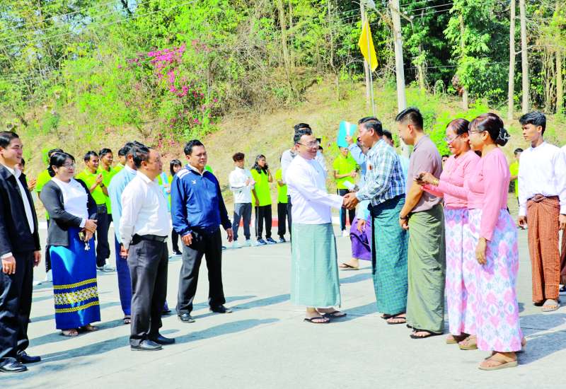 (၇၈)နှစ်မြောက် ပြည်ထောင်စုနေ့အခမ်းအနား ယဉ်ကျေးမှုအဖွဲ့များ ကြိုဆိုနေရာချထားရေးနှင့် ဧည့်ခံကျွေးမွေးရေး ဆပ်ကော်မတီဥက္ကဋ္ဌ အားကစားနှင့်လူငယ်ရေးရာဝန်ကြီးဌာန ဒုတိယဝန်ကြီး ဦးထိန်လင်းသည် တာဝန်ရှိသူများနှင့်အတူ (၇၈) နှစ်မြောက် ပြည်ထောင်စုနေ့ အခမ်းအနားတက်ရောက်ရန်အတွက် ယနေ့နံနက်ပိုင်းတွင် ရောက်ရှိလာကြသည့် ချင်းပြည်နယ်၊ စစ်ကိုင်းတိုင်းဒေသကြီး၊ ရခိုင်ပြည်နယ်နှင့် ရှမ်းပြည်နယ်တို့မှ တိုင်းရင်းသားရိုးရာယဉ်ကျေးမှုအကအဖွဲ့များအား ရင်းရင်းနှီးနှီးကြိုဆို နှုတ်ဆက်သည်။