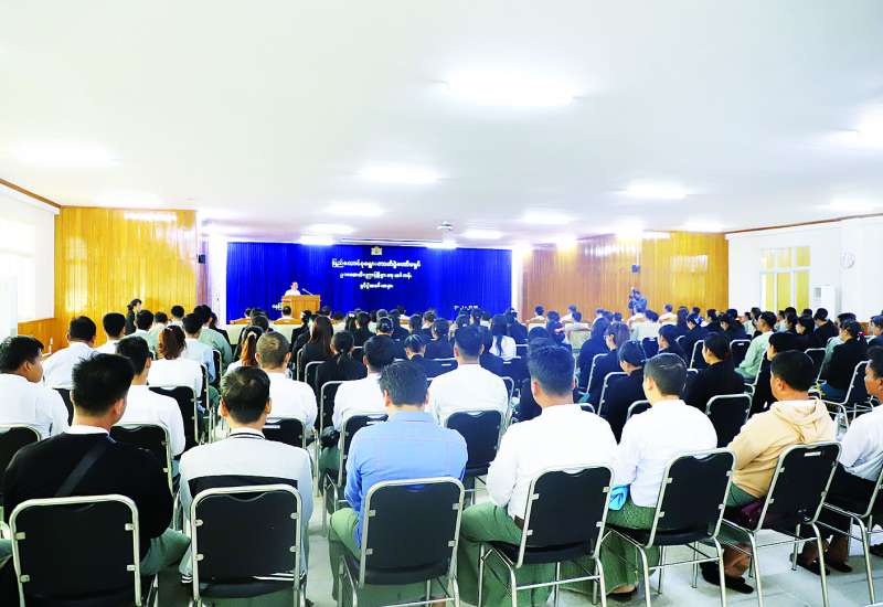 ပြည်ထောင်စုရွေးကောက်ပွဲကော်မရှင် ဥပဒေအသိပညာ ပြန့်ပွားရေးသင်တန်းဖွင့်ပွဲကို ယနေ့ နံနက်ပိုင်းတွင် နေပြည်တော်ရှိ ပြည်ထောင်စုရွေးကောက် ပွဲကော်မရှင်ရုံး၌ကျင်းပရာ ပြည်ထောင်စုရွေးကောက်ပွဲကော်မရှင်ဥက္ကဋ္ဌ ဦးကိုကိုနှင့်အဖွဲ့ဝင်များ၊ အရာထမ်း၊ အမှုထမ်းများ တက်ရောက်ကြသည်။