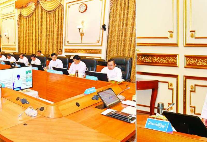 ပြည်ထောင်စုအစိုးရအဖွဲ့လုပ်ငန်းညှိနှိုင်းအစည်းအဝေးကို ယနေ့နံနက်ပိုင်းတွင် နေပြည်တော်ရှိ နိုင်ငံတော်စီမံအုပ်ချုပ်ရေးကောင်စီဥက္ကဋ္ဌရုံး အစည်းအဝေးခန်းမ၌ကျင်းပရာ နိုင်ငံတော်စီမံအုပ်ချုပ်ရေးကောင်စီဥက္ကဋ္ဌ နိုင်ငံတော်ဝန်ကြီးချုပ် ဗိုလ်ချုပ်မှူးကြီးမင်းအောင်လှိုင် တက်ရောက်အမှာစကားပြောကြားသည်။