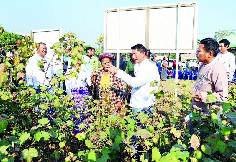 စိုက်ပျိုးရေး၊ မွေးမြူရေးနှင့်ဆည်မြောင်းဝန်ကြီးဌာန ပြည်ထောင်စုဝန်ကြီး ဦးမင်းနောင်သည် တာဝန်ရှိသူများ၊ ဝါစိုက်တောင်သူများနှင့်အတူ ယနေ့မွန်းလွဲပိုင်းတွင် တပ်ကုန်းမြို့နယ် မြောင်မြိုက်ကျေးရွာအုပ်စု ဒဟတ်ကုန်းကျေးရွာရှိ ချည်မျှင်ရှည်ဝါစိုက်ကွင်းသို့ ကွင်းဆင်းကြည့်ရှုသည်။