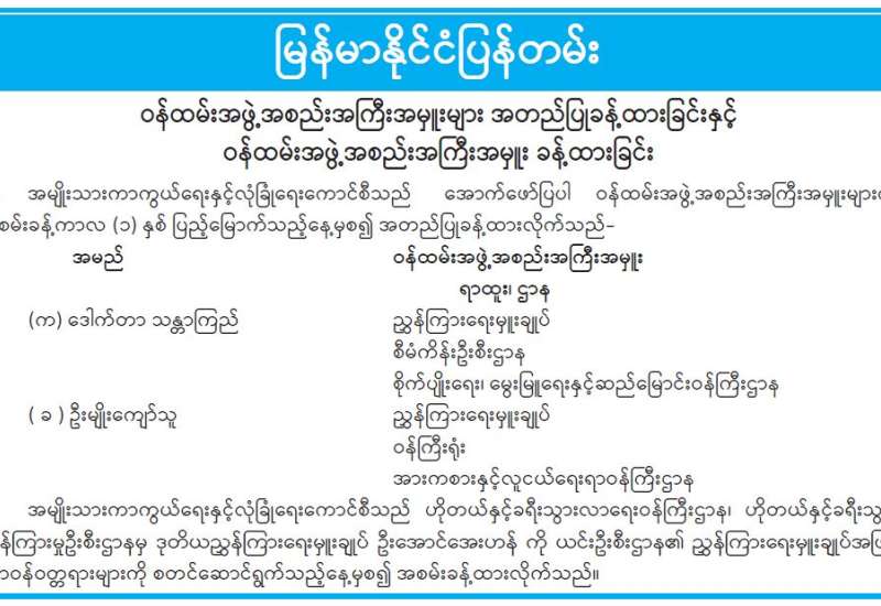 ဝန်ထမ်းအဖွဲ့အစည်းအကြီးအမှူးများ အတည်ပြုခန့်ထားခြင်းနှင့် ဝန်ထမ်းအဖွဲ့အစည်းအကြီးအမှူး ခန့်ထားခြင်း