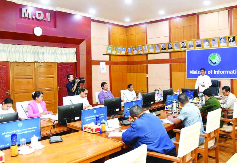(၇၉)နှစ်မြောက် ပြည်ထောင်စုနေ့အခမ်းအနားကျင်းပရေး ပြန်ကြားရေးဆပ်ကော်မတီ၏ လုပ်ငန်းညှိနှိုင်းအစည်းအဝေးနှင့် ၂၀၂၅ ခုနှစ်အတွက် မြန်မာ့ရုပ်ရှင်ထူးချွန်ဆုချီးမြှင့်ပွဲအခမ်းအနား အောင်မြင်စွာကျင်းပနိုင်ရေးအတွက် အခမ်းအနားကျင်းပရေး လုပ်ငန်းကော်မတီ ညှိနှိုင်းအစည်းအဝေးတို့ကို ယနေ့တွင် ပြန်ကြားရေးဝန်ကြီးဌာနအစည်းအဝေးခန်းမ၌ ကျင်းပသည်။