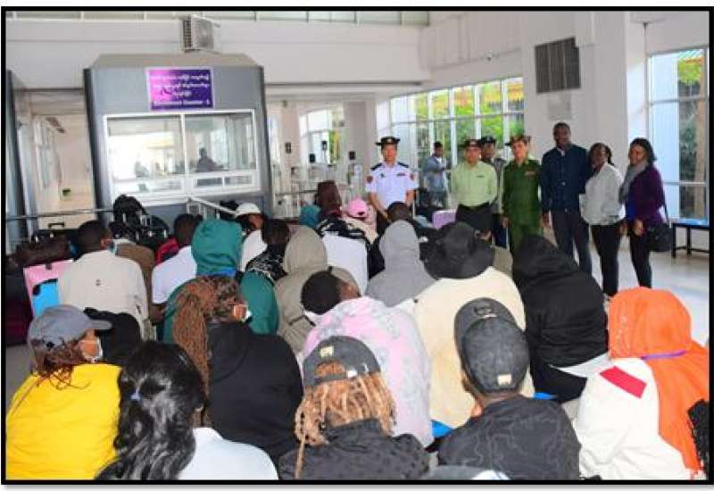 ထိုင်းနိုင်ငံအပါအဝင် အိမ်နီးချင်းနိုင်ငံအချို့ကို တစ်ဆင့်ခံဖြတ်သန်း၍ မြန်မာနိုင်ငံအတွင်းသို့ နယ်စပ်လမ်းကြောင်းများမှ တရားမဝင်ဝင်ရောက်လာပြီး ကရင်ပြည်နယ်၊ မြဝတီ-ရွှေကုက္ကိုလ်နယ်မြေတွင် တရားမဝင်အွန်လိုင်းလောင်းကစားမှုများ၊ အွန်လိုင်းလိမ်လည်မှုများ၊ ဒုစရိုက်မှုများ ကျူးလွန်ခဲ့ကြသည့် ကင်ညာနိုင်ငံသား ၅၉ ဦး၊ ယူဂန်ဒါနိုင်ငံသား ၂၀ ဦး၊ နိုင်ဂျီးရီးယားနိုင်ငံသား ၁၃ ဦး၊ ကင်မရွန်းနိုင်ငံသားသုံးဦး၊ ဂါနာနိုင်ငံသားသုံးဦး၊ ဆီရီရာလီယွန်နိုင်ငံသား နှစ်ဦး၊ လိုင်ဘေးရီးယားနိုင်ငံသားတစ်ဦး၊ မာလာဝီနိုင်ငံသားတစ်ဦးနှင့် ဘူရွန်ဒီနိုင်ငံသားတစ်ဦး၊ စုစုပေါင်းပြည်ပနိုင်ငံသား ၁၀၃ ဦးတို့အား မြန်မာ-ထိုင်း အမှတ်(၂) ချစ်ကြည်ရေးတံတားမှတစ်ဆင့် သက်ဆိုင်ရာနိုင်ငံများသို့ လူသားချင်းစာနာထောက်ထားမှုနှင့် နိုင်ငံအချင်းချင်း ချစ်ကြည်ရင်းနှီးမှုတို့ကိုရှေးရှု၍ ဥပဒေလုပ်ထုံးလုပ်နည်းများနှင့်အညီ ထပ်မံလွှဲပြောင်းပေးသည်။