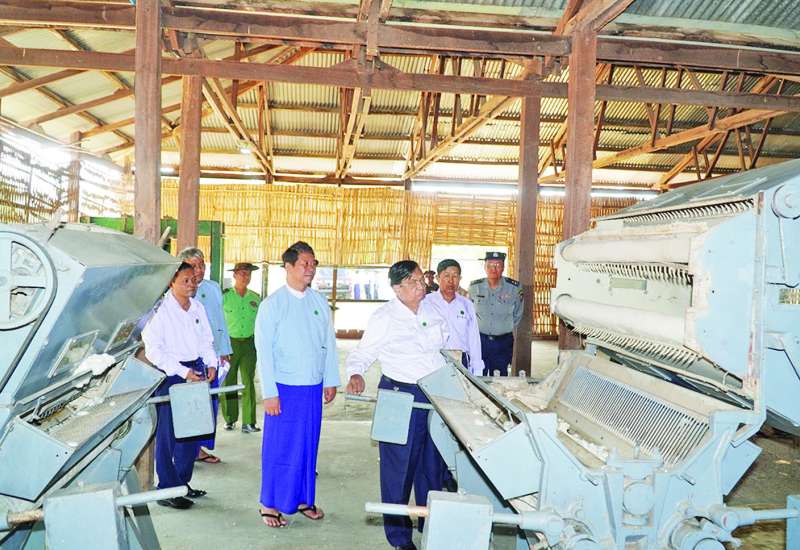စိုက်ပျိုးရေး၊မွေးမြူရေးနှင့်ဆည်မြောင်းဝန်ကြီးဌာန ပြည်ထောင်စုဝန်ကြီး ဦးမင်းနောင်သည် ယနေ့မွန်းလွဲပိုင်းတွင် နေပြည်တော် ပျဉ်းမနားရှိ စိုက်ပျိုးရေးနှင့်မွေးမြူရေးသိပ္ပံကျောင်းဝင်းအတွင်း မျိုးယှဉ်ပြိုင်စမ်းသပ်စိုက်ပျိုးထားသည့် ချည်မျှင်ရှည်ဝါစိုက်ခင်းကို ကြည့်ရှုစစ်ဆေးသည်။