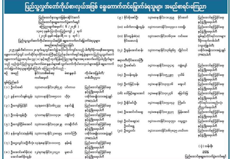 ပြည်သူ့လွှတ်တော်ကိုယ်စားလှယ်အဖြစ် ရွေးကောက်တင်မြှောက်ခံရသူများ အမည်စာရင်းကြေညာ