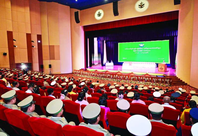 တပ်မတော်စွမ်းရည်သတ္တိဆိုင်ရာ ဂုဏ်ထူးဆောင်တံဆိပ်များ ချီးမြှင့်အပ်နှင်းခြင်းအခမ်းအနားကို ယနေ့မွန်းလွဲပိုင်းတွင် နေပြည်တော်ရှိ ဇေယျာသီရိဗိမာန်၌ ကျင်းပပြုလုပ်ရာ နိုင်ငံတော်လုံခြုံရေးနှင့်အေးချမ်းသာယာရေးကော်မရှင်ဥက္ကဋ္ဌ တပ်မတော်ကာကွယ်ရေးဦးစီးချုပ် ဗိုလ်ချုပ်မှူးကြီး သတိုးမဟာသရေစည်သူ သတိုးသီရိသုဓမ္မ မင်းအောင်လှိုင် တက်ရောက်မိန့်ခွန်းပြောကြားပြီး ဂုဏ်ထူးဆောင်တံဆိပ်များကို ချီးမြှင့်အပ်နှင်းပေးသည်။