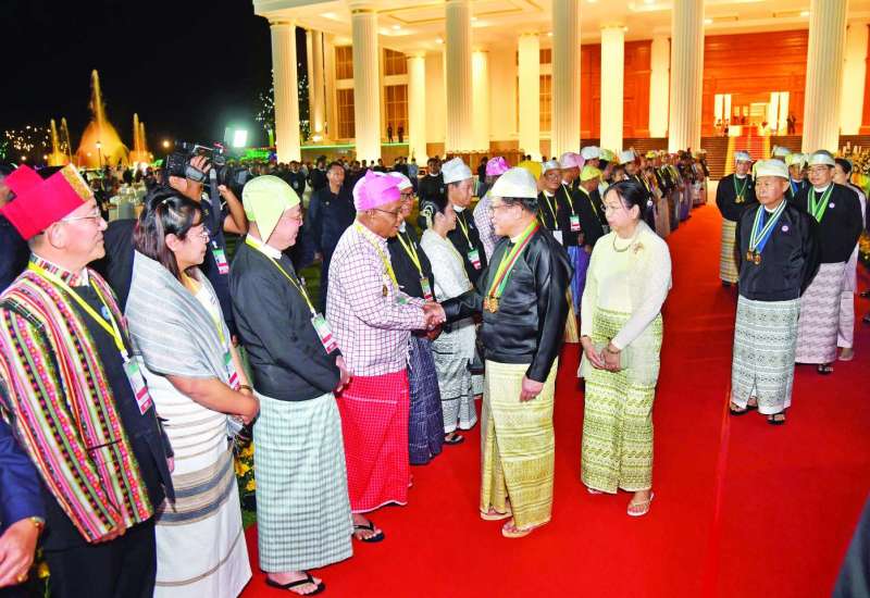 ပြည်ထောင်စုသမ္မတမြန်မာနိုင်ငံတော် ယာယီသမ္မတ နိုင်ငံတော်လုံခြုံရေးနှင့်အေးချမ်းသာယာရေးကော်မရှင်ဥက္ကဋ္ဌ ဗိုလ်ချုပ်မှူးကြီး သတိုးမဟာသရေစည်သူ သတိုးသီရိသုဓမ္မ မင်းအောင်လှိုင်နှင့်ဇနီး ဒေါ်ကြူကြူလှတို့က တည်ခင်းဧည့်ခံသည့် (၇၈)နှစ် မြောက်လွတ်လပ်ရေးနေ့အထိမ်းအမှတ် ဂုဏ်ပြုညစာစားပွဲနှင့် ဂုဏ်ပြုဖျော်ဖြေပွဲအခမ်းအနားကို ယနေ့ညနေပိုင်းတွင် နေပြည်တော်ရှိ အမျိုးသားကာကွယ်ရေးနှင့်လုံခြုံရေးကောင်စီရုံး ဥပစာမြက်ခင်းပြင်၌ ကျင်းပသည်။