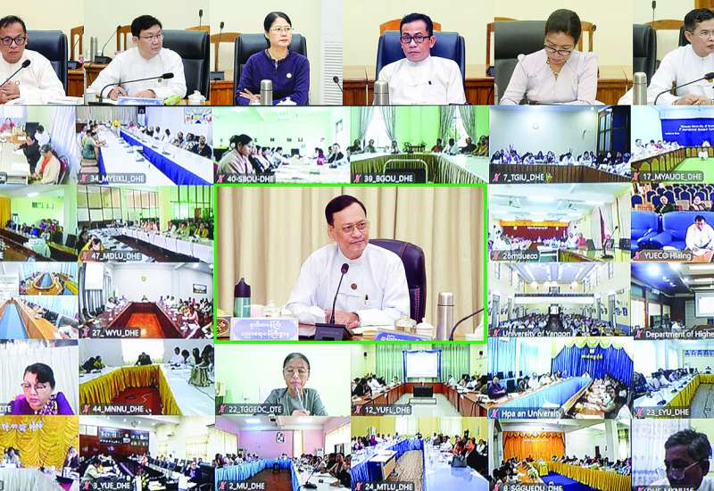 သိပ္ပံပွဲတော်(Science Festival)ကျင်းပရေးနှင့် တက္ကသိုလ်ဝင်စာမေးပွဲမအောင်မြင်သူများအတွက် အလုပ်အကိုင်ရရှိရေး အထောက်အကူပြုအတတ်ပညာကျွမ်းကျင်မှု (Skilled Labour) သင်တန်းများဖွင့်လှစ်ရေး ညှိနှိုင်းအစည်းအဝေးကို ယမန်နေ့မွန်းလွဲပိုင်းတွင် နေပြည်တော်ပညာရေးဝန်ကြီးဌာန ရုံးအမှတ်(၁၃)ရှိ အစည်းအဝေးခန်းမ၌ ကျင်းပသည်။