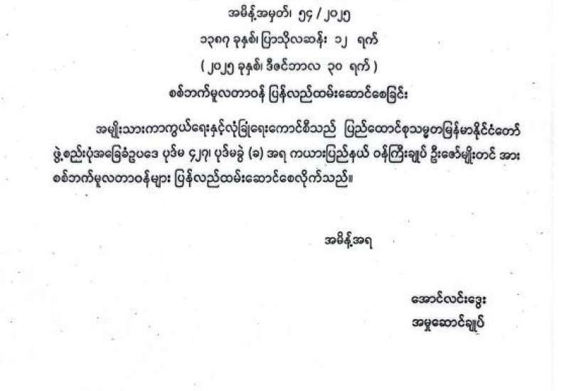 စစ်ဘက်မူလတာဝန် ပြန်လည်ထမ်းဆောင်စေခြင်း