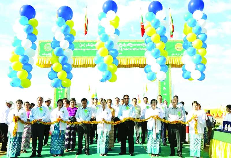 (၇၈) နှစ်မြောက် လွတ်လပ်ရေးနေ့ကို ကြိုဆိုဂုဏ်ပြုသောအားဖြင့် သမဝါယမနှင့် ကျေးလက်ဖွံ့ဖြိုးရေးဝန်ကြီးဌာန ကျေးလက်လမ်းဖွံ့ဖြိုးရေးဦးစီးဌာန တံတားတည်ဆောက်ရေးအဖွဲ့က အမျိုးသားသဘာဝဘေးအန္တရာယ်ဆိုင်ရာ စီမံခန့်ခွဲမှုရန်ပုံငွေ၊ ၂၀၂၅-၂၆ ဘဏ္ဍာနှစ် ပြည်ထောင်စုငွေလုံး ငွေရင်းရန်ပုံငွေတို့ဖြင့် တည်ဆောက်ခဲ့သော နေပြည်တော်ကောင်စီနယ်မြေ တပ်ကုန်းမြို့နယ် ညောင်ပင်သာ-ရှားတော ကျေးရွာ ချင်းဆက်လမ်းပေါ်ရှိ Submersible Bridge ပေ (၁၈၀) ရေနိမ့်တံတားဖွင့်ပွဲကို ယနေ့နံနက်ပိုင်းတွင် အဆိုပါတံတား၌ကျင်းပရာ ပြည်ထောင်စုဝန်ကြီး ဦးလှမိုး၊ နေပြည်တော်ကောင်စီဥက္ကဋ္ဌ ဦးသန်းထွန်းဦး၊ ဒုတိယဝန်ကြီး ဦးသိုက်စိုး၊ နေပြည်တော်ကောင်စီဝင်များ၊ အမြဲတမ်းအတွင်းဝန်၊ ညွှန်ကြားရေးမှူးချုပ်များနှင့် တာဝန်ရှိသူများ တက်ရောက်ကြသည်။