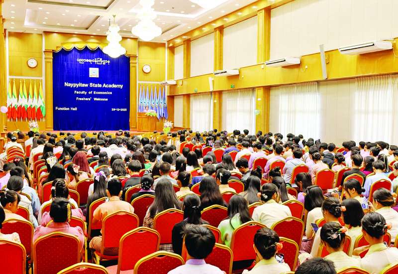 Naypyitaw State Academy၊ စီးပွားရေးပညာ မဟာဌာန၏ ၂၀၂၅ - ၂၀၂၆ ပညာသင်နှစ် မောင်မယ်သစ်လွင်ကြိုဆိုပွဲအခမ်းအနားကို အဆိုပါတက္ကသိုလ်ရှိ ဘက်စုံသုံးခန်းမ၌ ဒီဇင်ဘာ ၂၉ ရက်က နှစ်ပိုင်းခွဲ၍ ကျင်းပရာ Naypyitaw State Academy ပါမောက္ခချုပ်၊ ဒုတိယပါမောက္ခချုပ်၊ ပါမောက္ခ (ဌာနမှူး) များ၊ ဆရာ ဆရာမများ၊ သင်တန်း၊ စီမံမှတာဝန်ရှိသူများ၊ ဝါဏိဇ္ဇဗေဒ၊ စီးပွားရေးလုပ်ငန်းစီမံခန့်ခွဲမှု ပညာ၊ စာရင်းအင်းပညာ၊ ဘောဂဗေဒ၊ ခရီးသွားလုပ်ငန်းနှင့် ဧည့်ဝန်ဆောင်မှုစီမံခန့်ခွဲမှုပညာနှင့် စီးပွားရေးပညာအထူးပြု ကျောင်းသား ကျောင်းသူများ တက်ရောက်ကြသည်။
