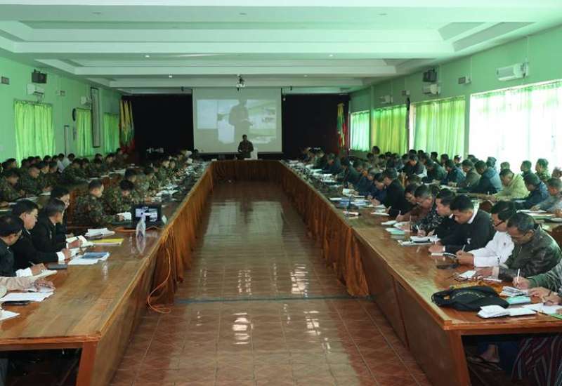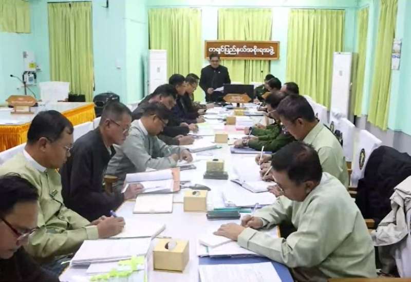 ရှမ်းပြည်နယ် (အရှေ့ပိုင်း)၊ မြို့နယ်များ၌ ဒီဇင်ဘာလ ၂၈ ရက်နေ့တွင် ကျင်းပခဲ့သည့် ၂၀၂၅ ခုနှစ်၊ ပါတီစုံဒီမိုကရေစီအထွေထွေရွေးကောက်ပွဲအပိုင်း (၁) ၏ အားနည်းချက်၊ အားသာချက်များအား ပြန်လည်သုံးသပ်ခြင်းနှင့် ရွေးကောက်ပွဲအပိုင်း (၂) ကျင်းပရန် ကျန်ရှိနေသေးသော မြို့နယ်များ၌ အောင်မြင်စွာကျင်းပနိုင်ရေး လုပ်ငန်းညှိနှိုင်းအစည်းအဝေးကို ယနေ့နံနက်ပိုင်းတွင် တြိဂံဒေသတိုင်းစစ်ဌာနချုပ် အစည်းအဝေးခန်းမ၌ ပြုလုပ်ခဲ့ရာ တိုင်းမှူး ဗိုလ်ချုပ် စိုးလှိုင်နှင့် အဖွဲ့ဝင်များ၊ ပြည်နယ်၊ ခရိုင်၊ မြို့နယ်အဆင့် ဌာနဆိုင်ရာတာဝန်ရှိသူများ၊ ရှမ်းပြည်နယ်(အရှေ့ပိုင်း) ရွေးကောက်ပွဲကော်မရှင်အဖွဲ့ခွဲမှ တာဝန်ရှိသူများ၊ ဌာနေပြည်သူ့စစ်အဖွဲ့ဝင်များနှင့် ဖိတ်ကြားထားသူများ တက်ရောက်ကြသည်။
