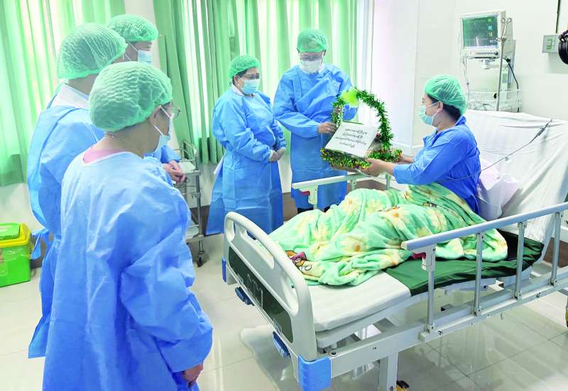 ကျန်းမာရေးဝန်ကြီးဌာန ပြည်ထောင်စုဝန်ကြီး ပါမောက္ခဒေါက်တာသက်ခိုင်ဝင်းသည် တာဝန်ရှိသူများနှင့်အတူ ယနေ့နံနက်ပိုင်းတွင် ခုတင် (၅၀၀) အထူးကုဆေးရုံကြီး ရန်ကုန်မြို့သို့ သွားရောက်၍ အောင်မြင်စွာဆောင်ရွက်ခဲ့သည့် အသည်းအစားထိုးခွဲစိတ်ကုသမှုဆောင်ရွက်ခဲ့သော အသည်းလူနာနှင့် အသည်းအလှူရှင် လေးဦးတို့ကို ကြည့်ရှုစစ်ဆေး၍ အစားအသောက်လက်ဆောင်ခြင်းများ ချီးမြှင့်ပေးအပ်သည်။